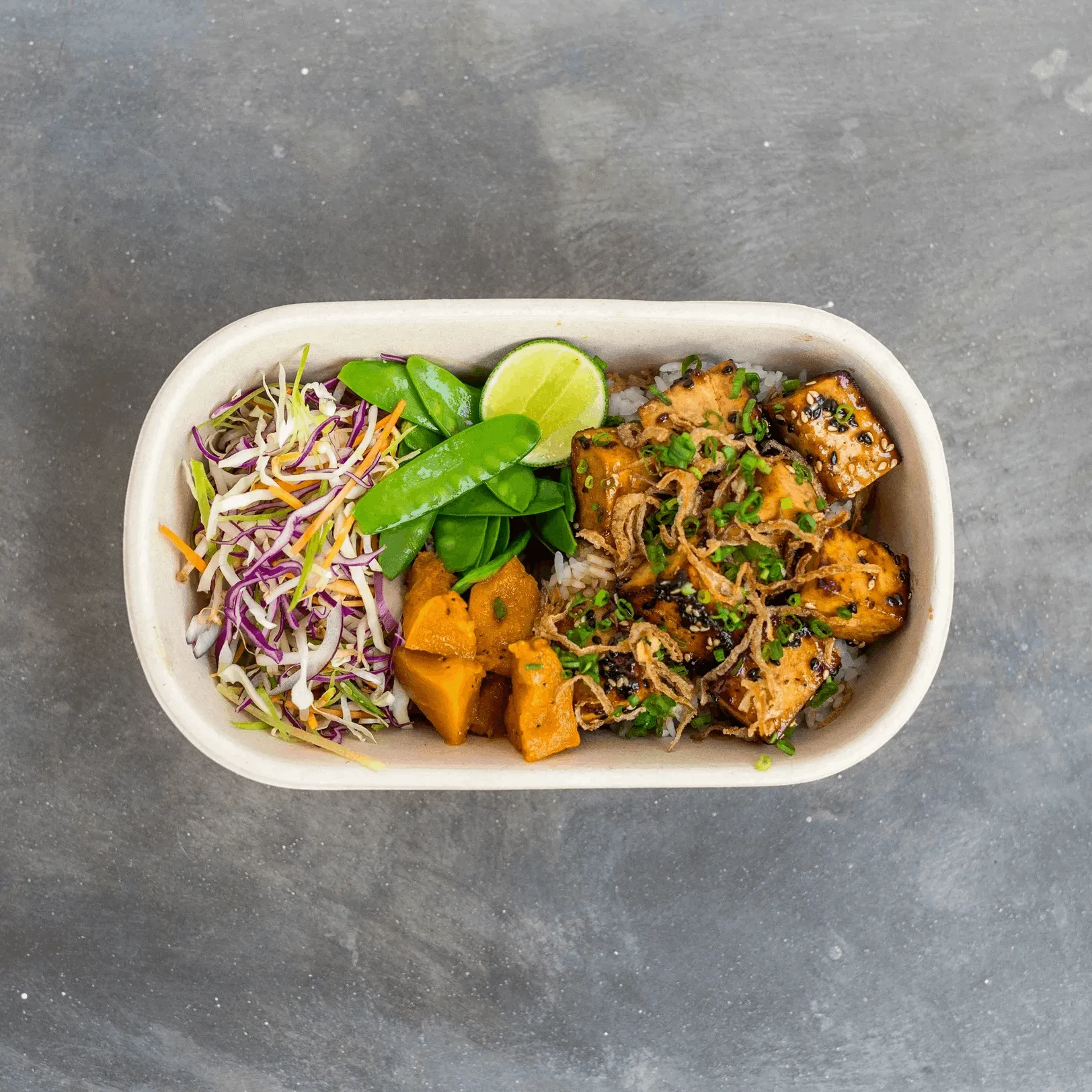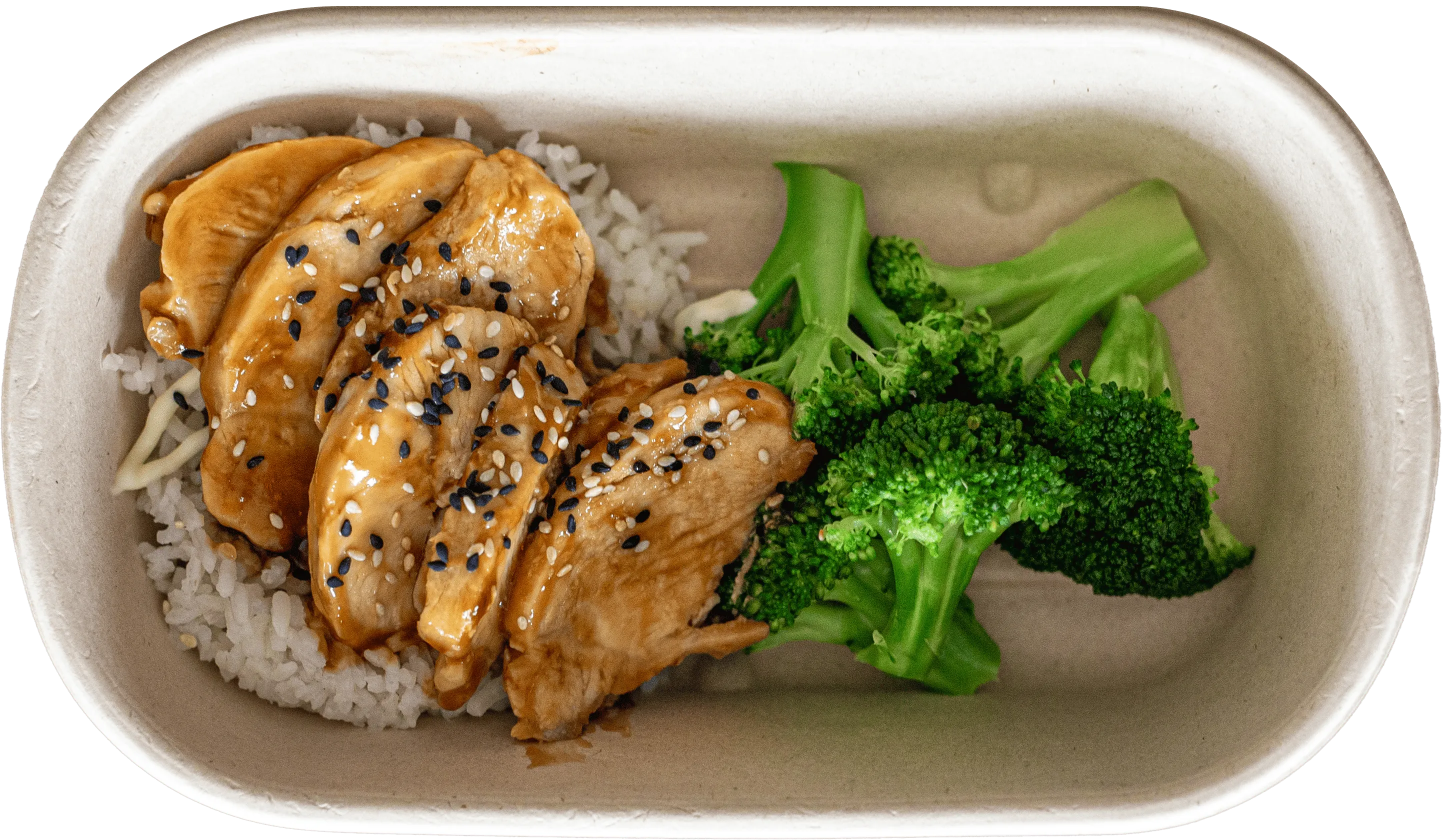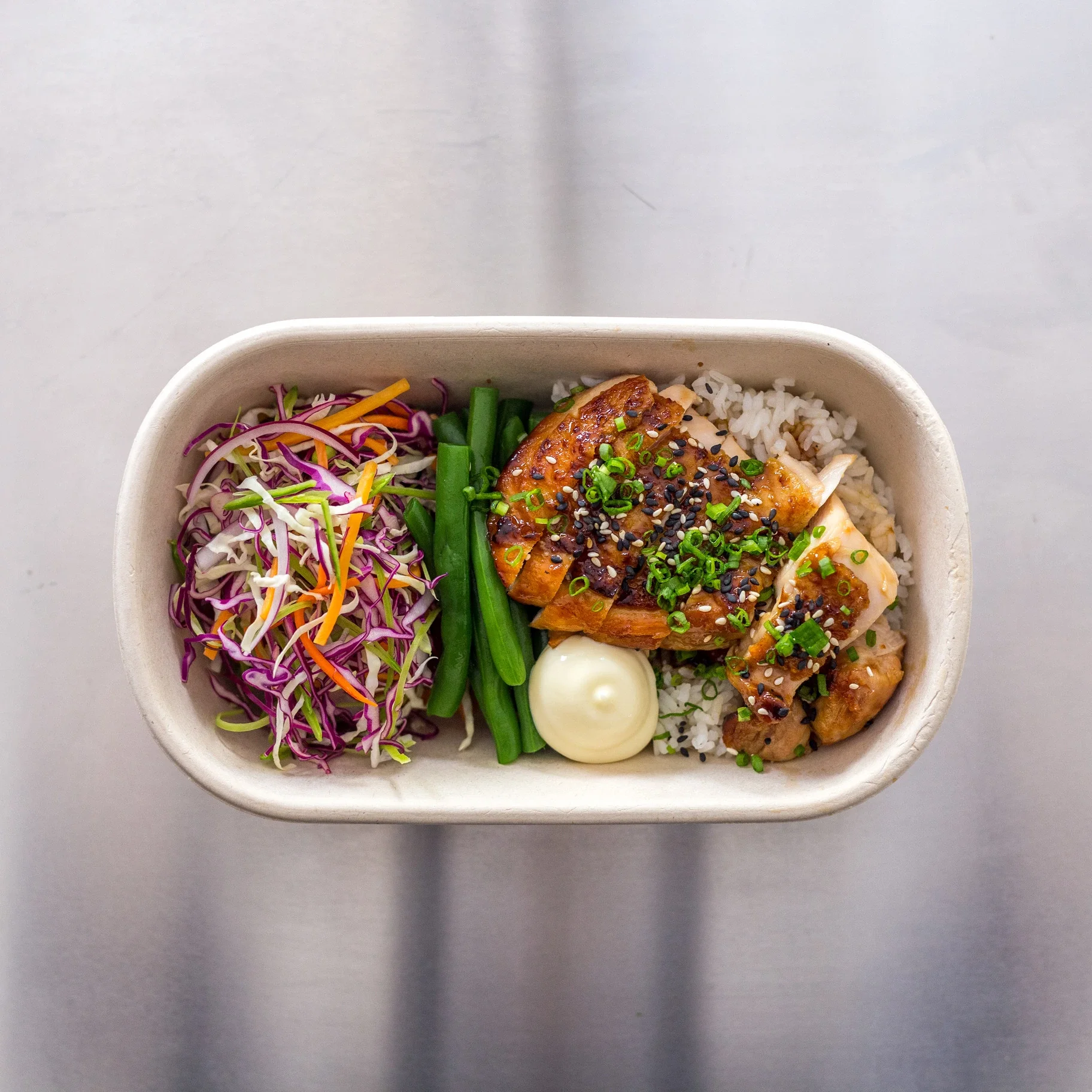 Chicken breast, white rice + choice of broccoli / sweet potato + teriyaki sauce
